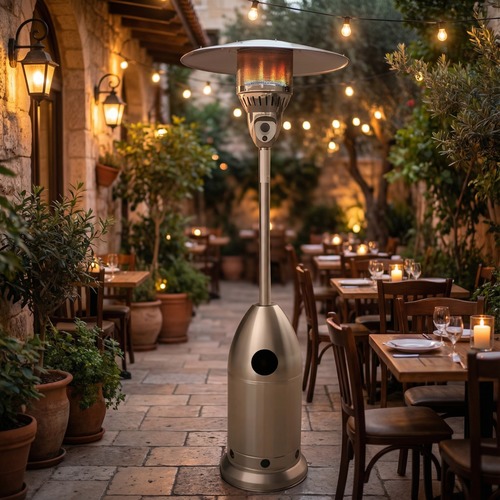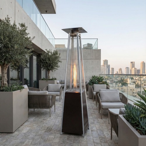 חימום גז: מקרני גז ופטריות חימום ניידות הפועלות על בסיס בלוני גז. לשימוש בחלל חיצוני בלבד.