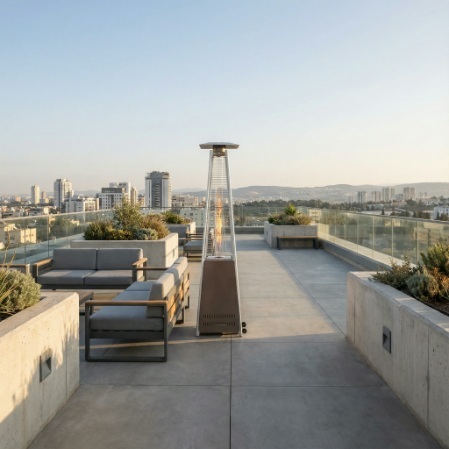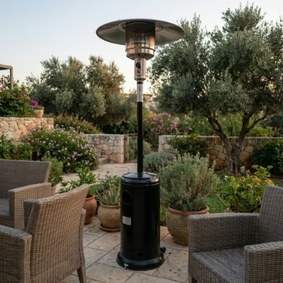 חימום גז: מקרני גז ופטריות חימום ניידות הפועלות על בסיס בלוני גז. לשימוש בחלל חיצוני בלבד.